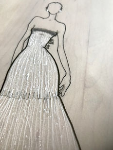 Non-traditional chantilly lace, flowing tulle, and organza combine with silk to embrace and mold the one's shape—classic silhouettes with the flair and daring of Odette's alter ego.